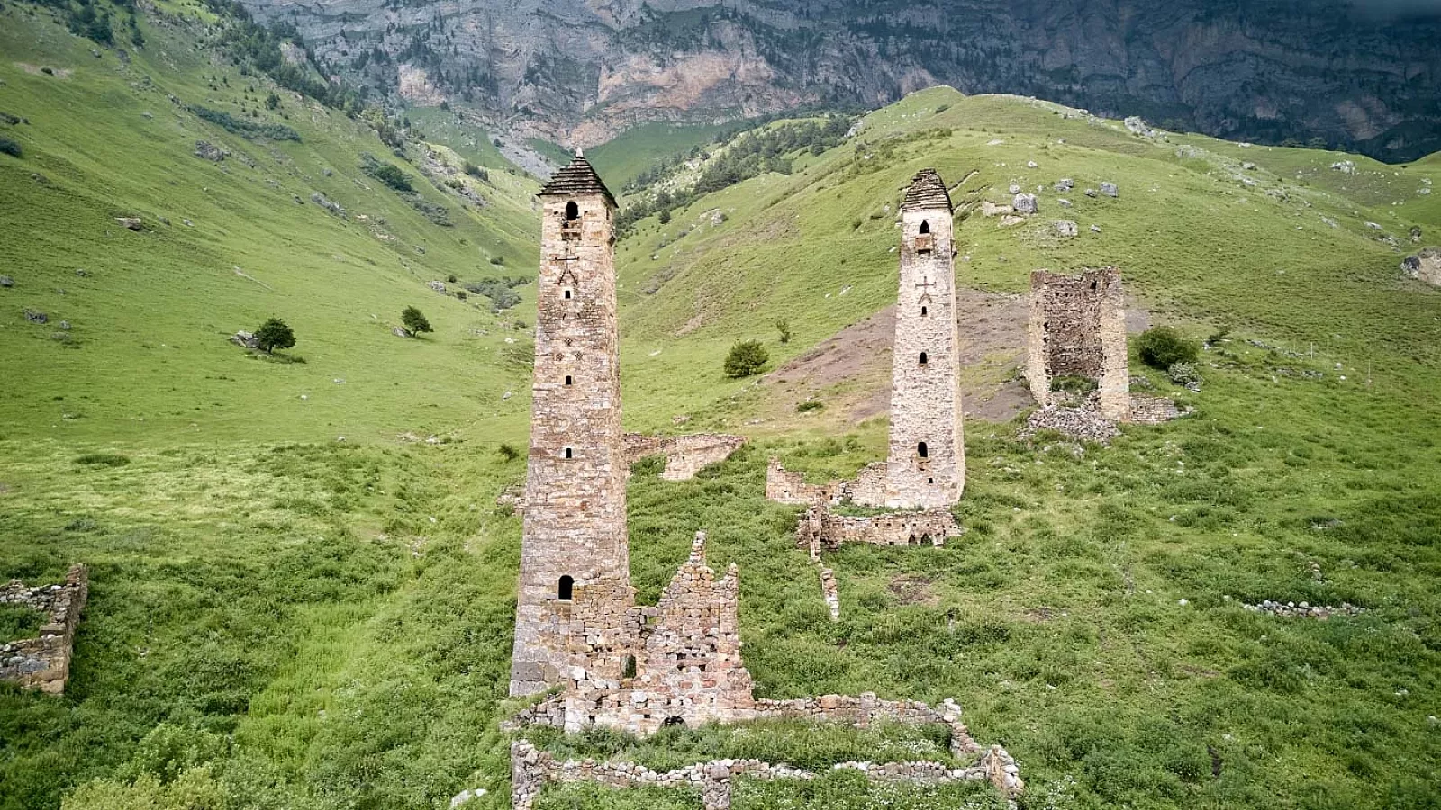 Ещё один важный объект — Эрзи. Это крупный башенный комплекс, который помогает увидеть масштаб ингушской каменной архитектуры. После Ния Эрзи воспринимается как более плотный и крупный ансамбль.