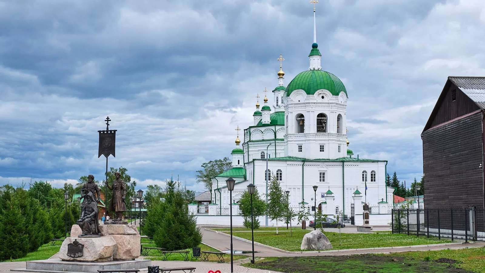 Величественный храм в стиле сибирского барокко, построенный на средства купцов. Один из старейших каменных соборов в Сибири.