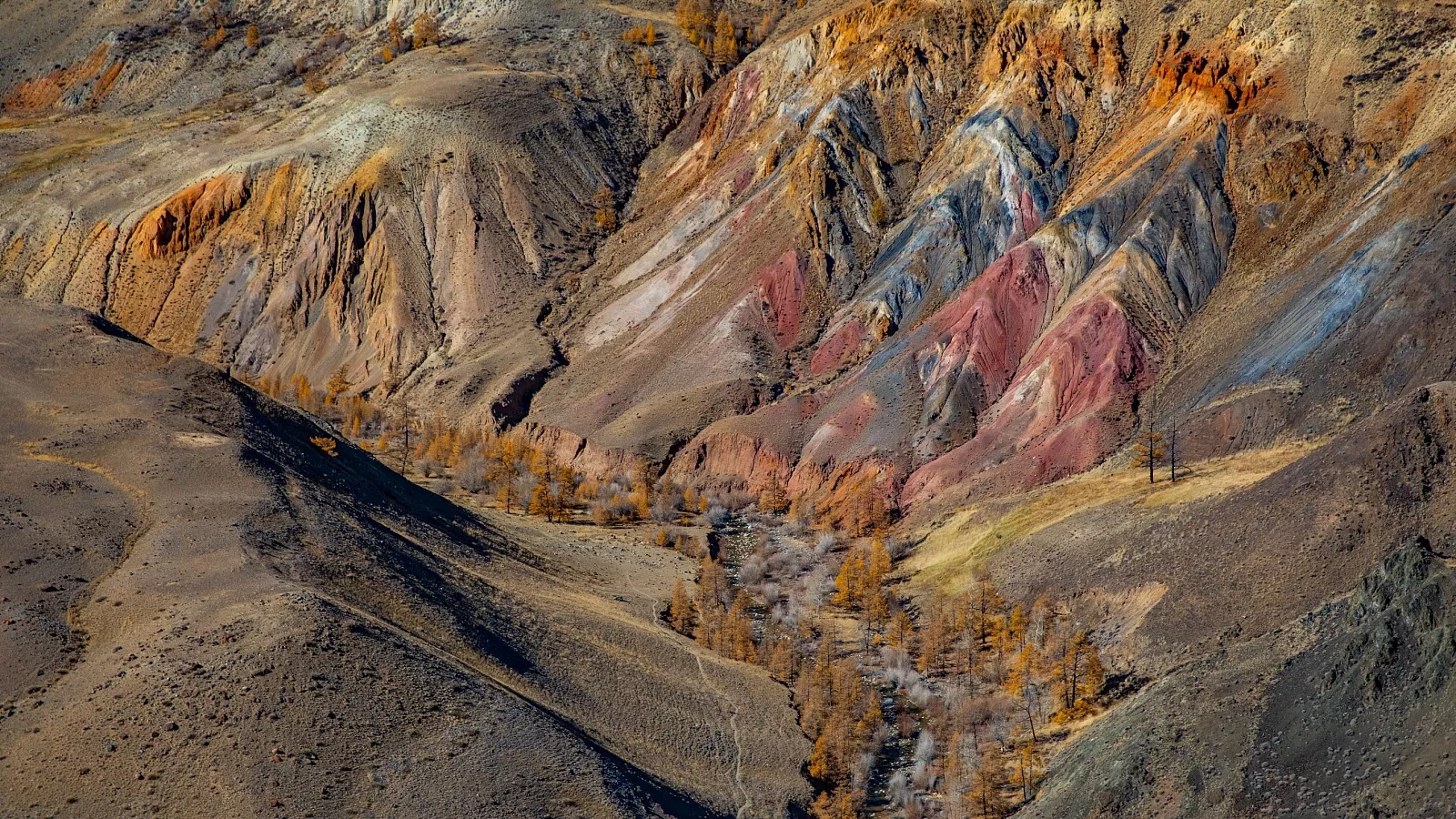 По сути, мы гуляли по бывшему дну древнего моря, а позже — реликтового Чуйского озера. Его глубина когда-то достигала двух километров, и здесь плавали айсберги. Сейчас от этого озера остались только рассказы геологов да удивительный «пирог» из цветных слоёв породы, каждый из которых — как страница в книге Земли.
