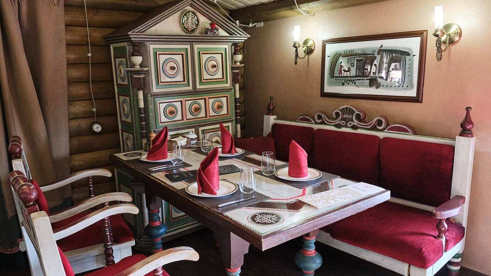 Атмосфера: уютный, камерный ресторан с тёплой деревянной отделкой и атмосферой охотничьего домика.