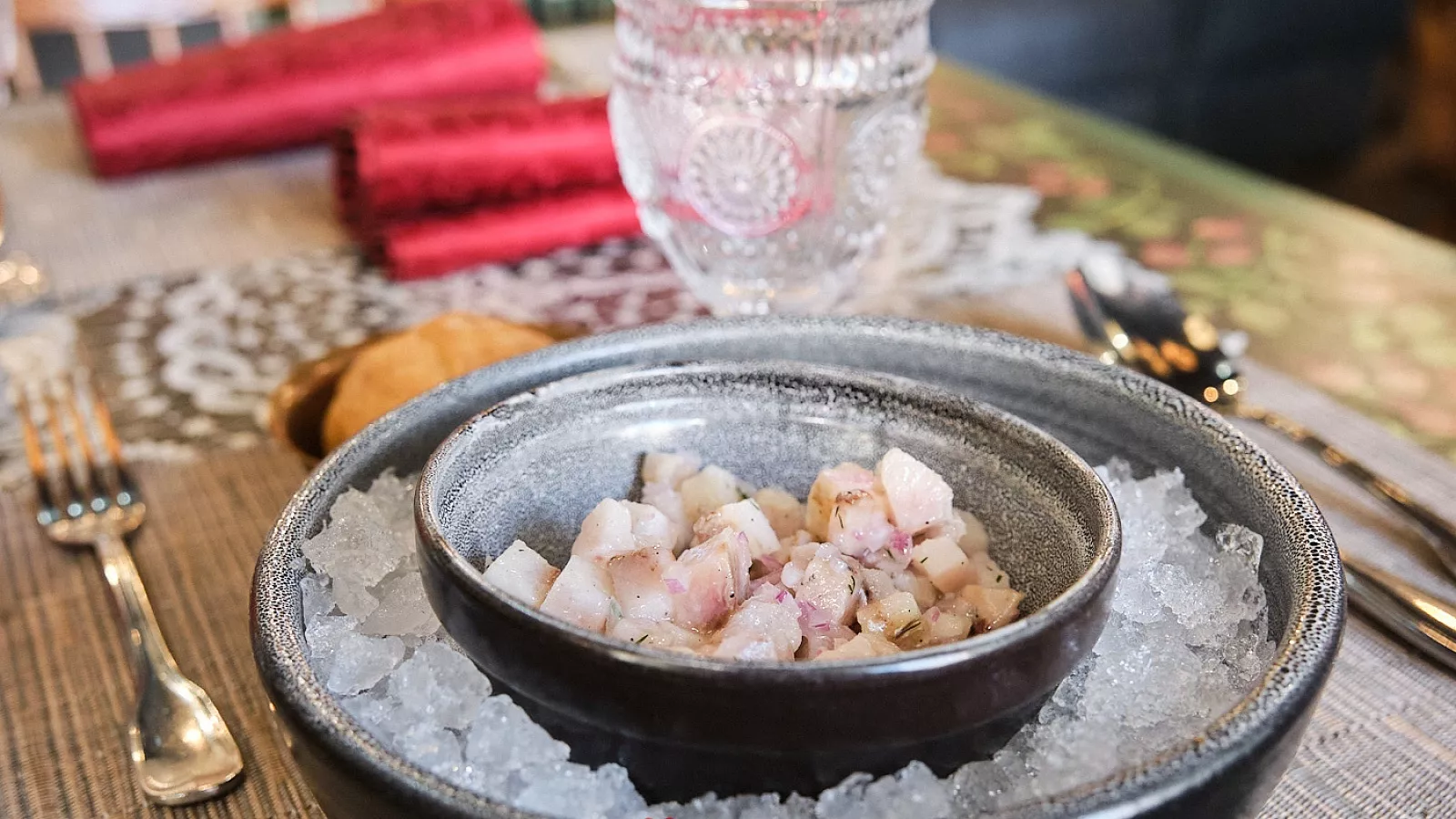 В некоторых местах подача блюд может быть театрализованной — например, строганину режут прямо при вас на льду.