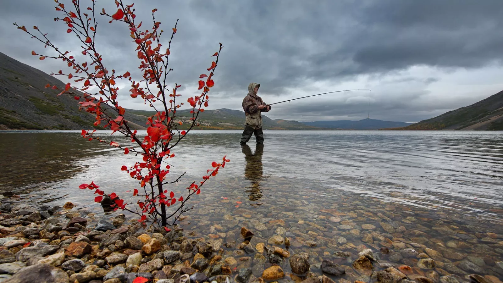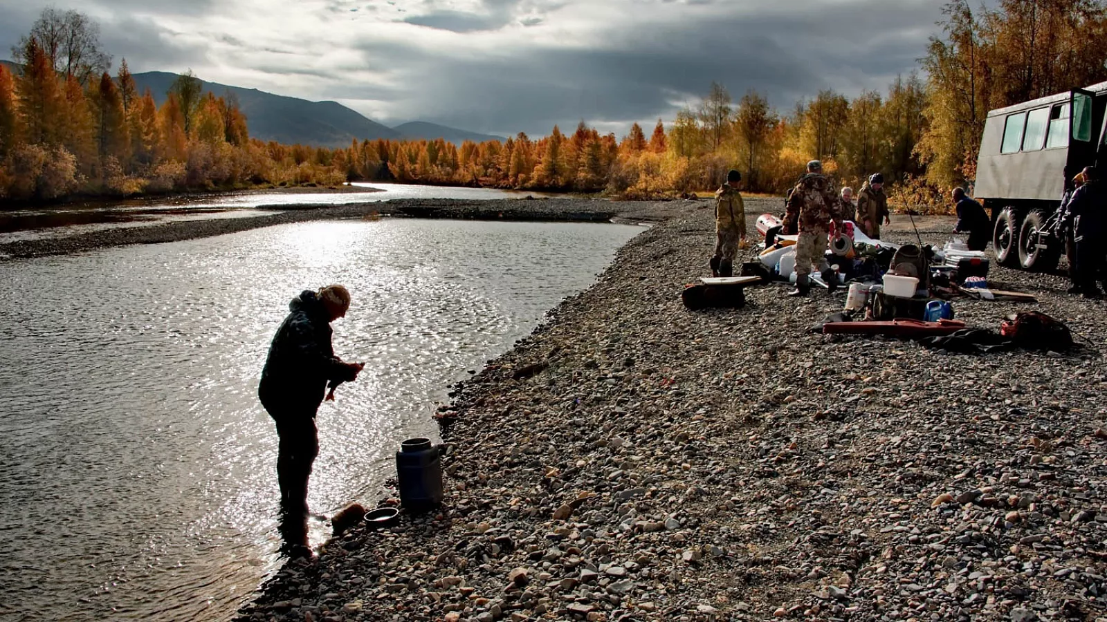 И ещё, конечно, сама осенняя Колыма. Я видел красивые места, но здесь природа производит особое впечатление. В сентябре она яркая глубокая, зрелая, местами даже суровая. Красные и оранжевые оттенки по склонам, прохладный воздух, прозрачная вода, длинные вечера — всё это создаёт атмосферу, которую трудно передать коротко.