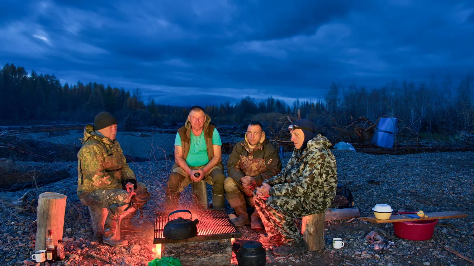 После ужина обычно сидели у огня, разговаривали, вспоминали дневные эпизоды, обсуждали рыбалку, снасти, удачные места. Связи не было совсем, и в этом оказался особый плюс. Было только живое общение, река, костёр и чувство, что ты находишься очень далеко от цивилизации.