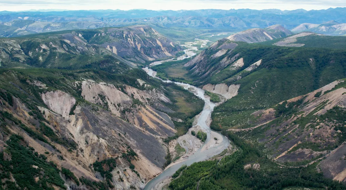 Позади разноцветные горы со смесью пород разных редкоземельных металлов. Ну, это я так думаю. Слева русло реки Хета́. Ну как Кета, только на букву «Х». Отличная остановка, чтобы почувствовать объём и мощь, что сзади, что спереди. Фото, видео с разных точек, пописать и вперёд.