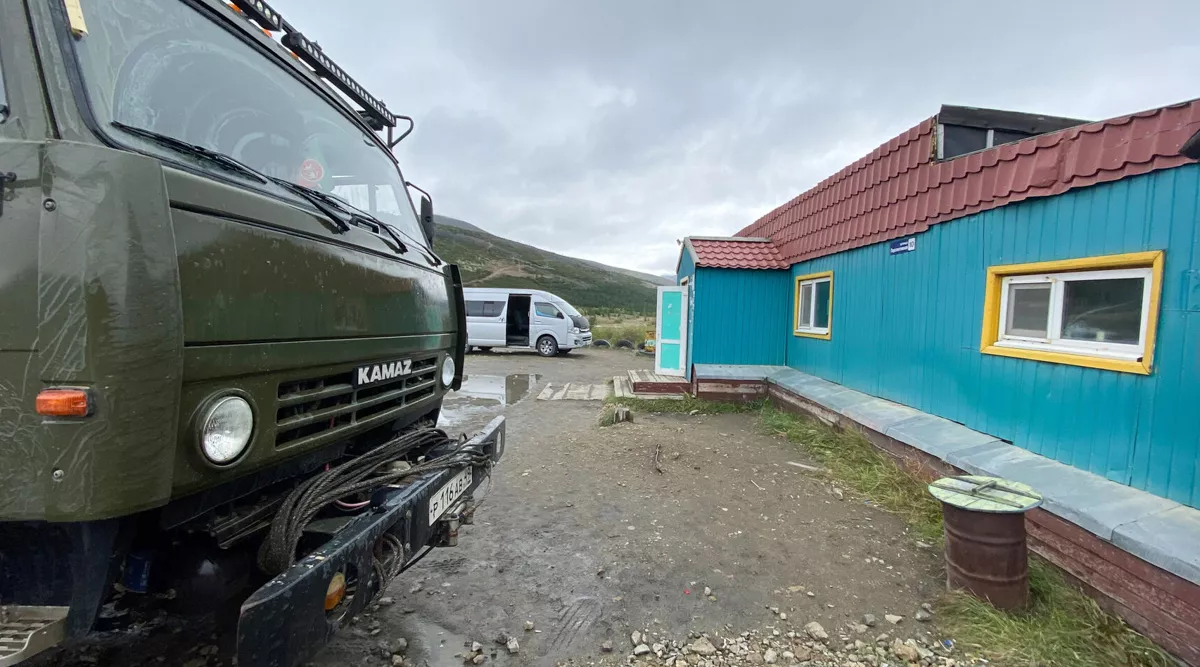 Едем! По большому счёту из города выходит одна единственная трасса Р-504 «Колыма», более — менее вся жизнь тянется именно к ней. Первые 140 километров асфальтовое покрытие, дальше уходим на гравийную отсыпку. От Магадана есть несколько жилых посёлков: Уптар, Сокол, Стекольный, Палатка. И нежилых, например, Карамкен. Полностью брошенный посёлок, многоэтажки с пустыми чёрными глазницами окон, полуразвалившиеся танки для нефтепродуктов, деревянные дома с проваленными крышами, посёлок-призрак, ещё один знак перестройки. А когда-то здесь кипела жизнь.
