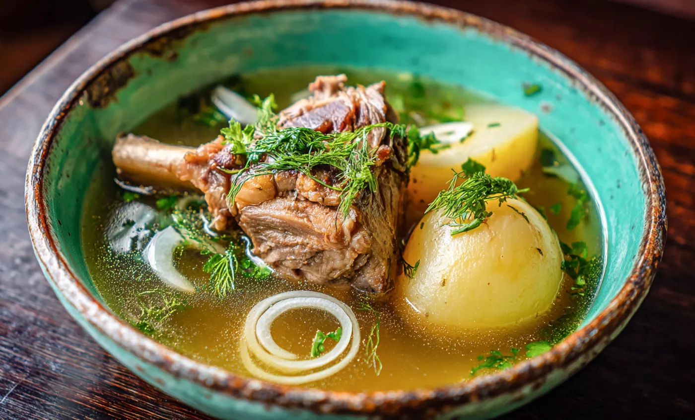 Это главное блюдо калмыцкой кухни — насыщенный горячий бульон из баранины с картофелем и свежим луком. Его обязательно готовят на все праздники и семейные торжества. Мясо используется исключительно свежее, выращенное в степях Калмыкии — баранина здесь отличается особым вкусом благодаря многотравью и свободному выпасу. В суп идут крупные куски мяса на кости, картошка и щедрая порция лука, нарезанного кольцами. Простое на вид блюдо на самом деле очень ароматное, питательное и глубоко укоренённое в национальной традиции.