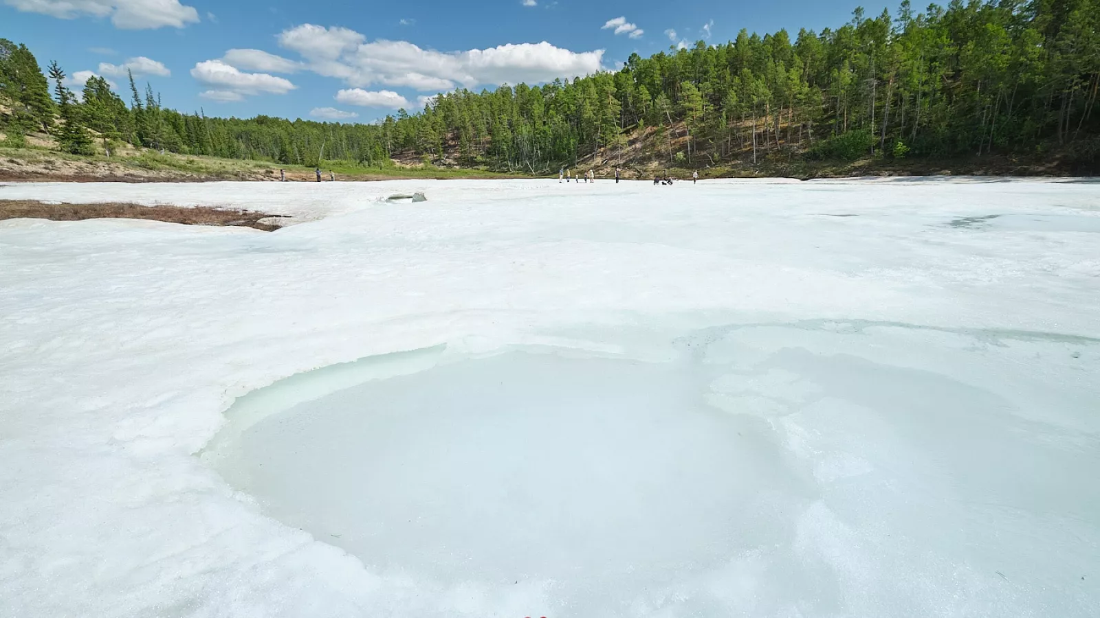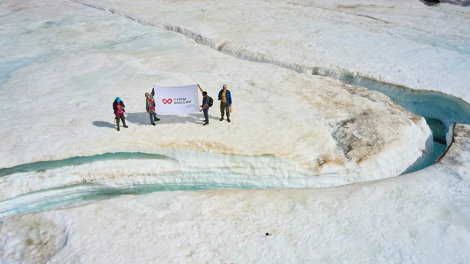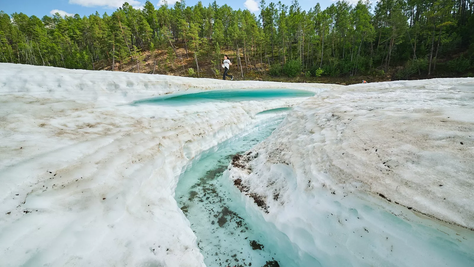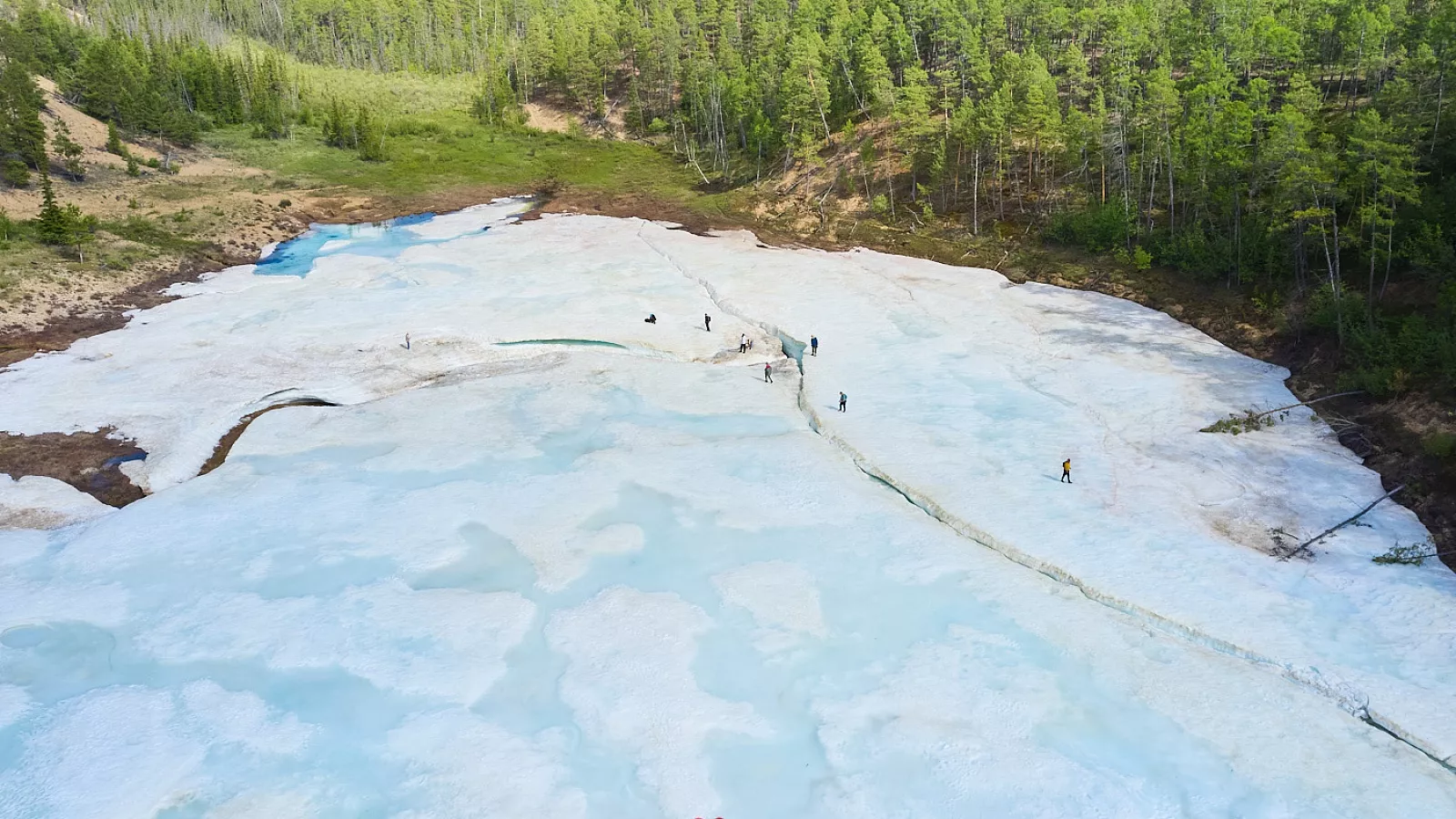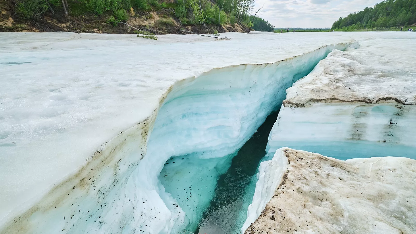 Сквозь толщу тайги внезапно открывается белый ледяной купол, как будто выпавший из другой климатической зоны. Посетители могут гулять по ледяной поверхности, чувствуя под ногами исходящий холод. Особо смелые туристы спускаются в ледяные расщелины или купаются в ледяном ручье — но делать это стоит крайне осторожно, здоровье важнее впечатлений.
