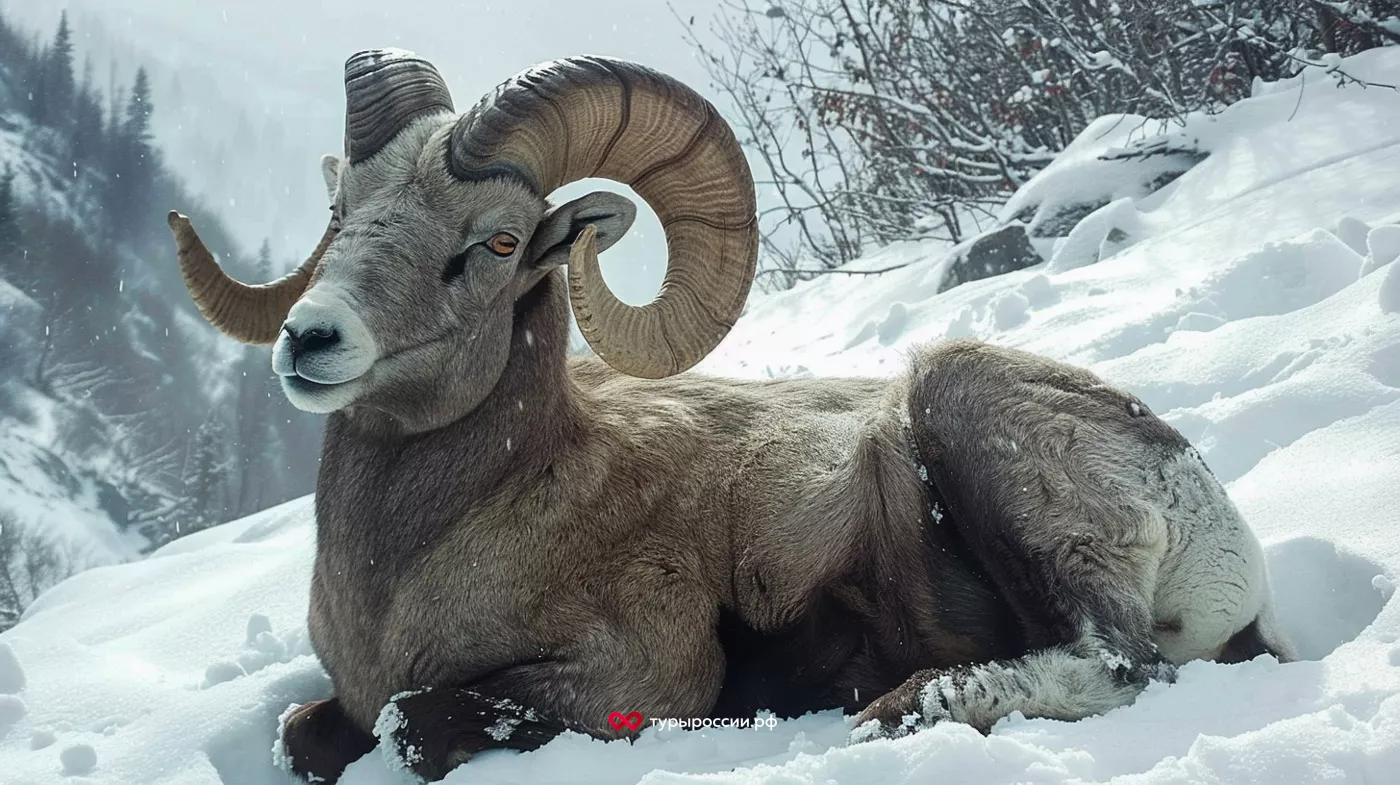Суровые условия: Зимы в этих районах крайне суровые, с низкими температурами, сильными ветрами и глубоким снежным покровом. Бараны приспособились к таким условиям, обладая густой шерстью и запасами жира.