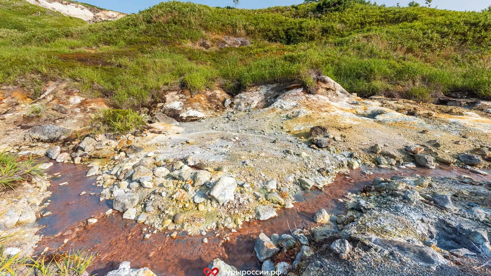искупаться в природных ваннах, наполненных горячей минеральной водой. Источники имеют температуру около +40–50°C и считаются целебными благодаря высокому содержанию минералов. Купание в таких условиях особенно приятно на фоне прохладной курильской погоды.