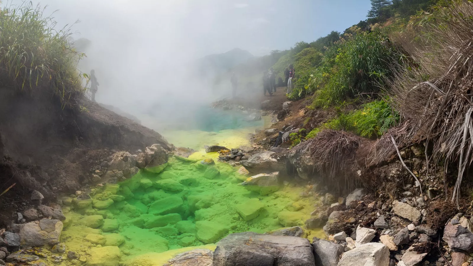 В районе вулкана находится обширное поле фумарол, где из трещин в земле поднимаются клубы горячего пара, насыщенные сероводородом и другими минералами. Это место выглядит как настоящая фантастическая локация: звуки выходящего пара и запах серы создают незабываемую атмосферу.