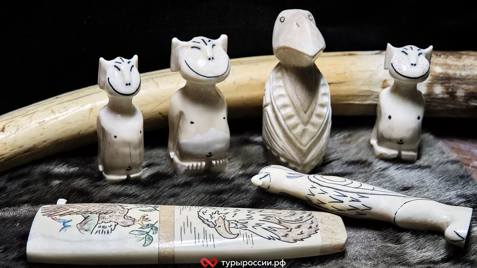 Одним из самых ценных и узнаваемых сувениров с Чукотки считаются изделия из моржовой кости и китового уса. Это не просто декоративные безделушки — а подлинные произведения арктического искусства, созданные руками мастеров, веками передающих знания и технику обработки кости от поколения к поколению.