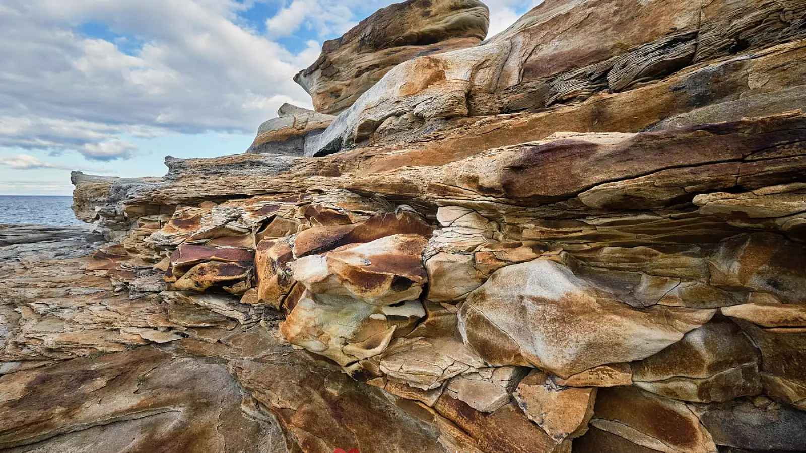Одна из необычных точек маршрута — так называемые Рыжие камни. Их поверхность окрашена в насыщенные оттенки красного и оранжевого, что особенно контрастирует с серой тундрой вокруг. Местами камни кажутся раскалёнными, словно куски застывшей лавы, и производят сильное впечатление на туристов.