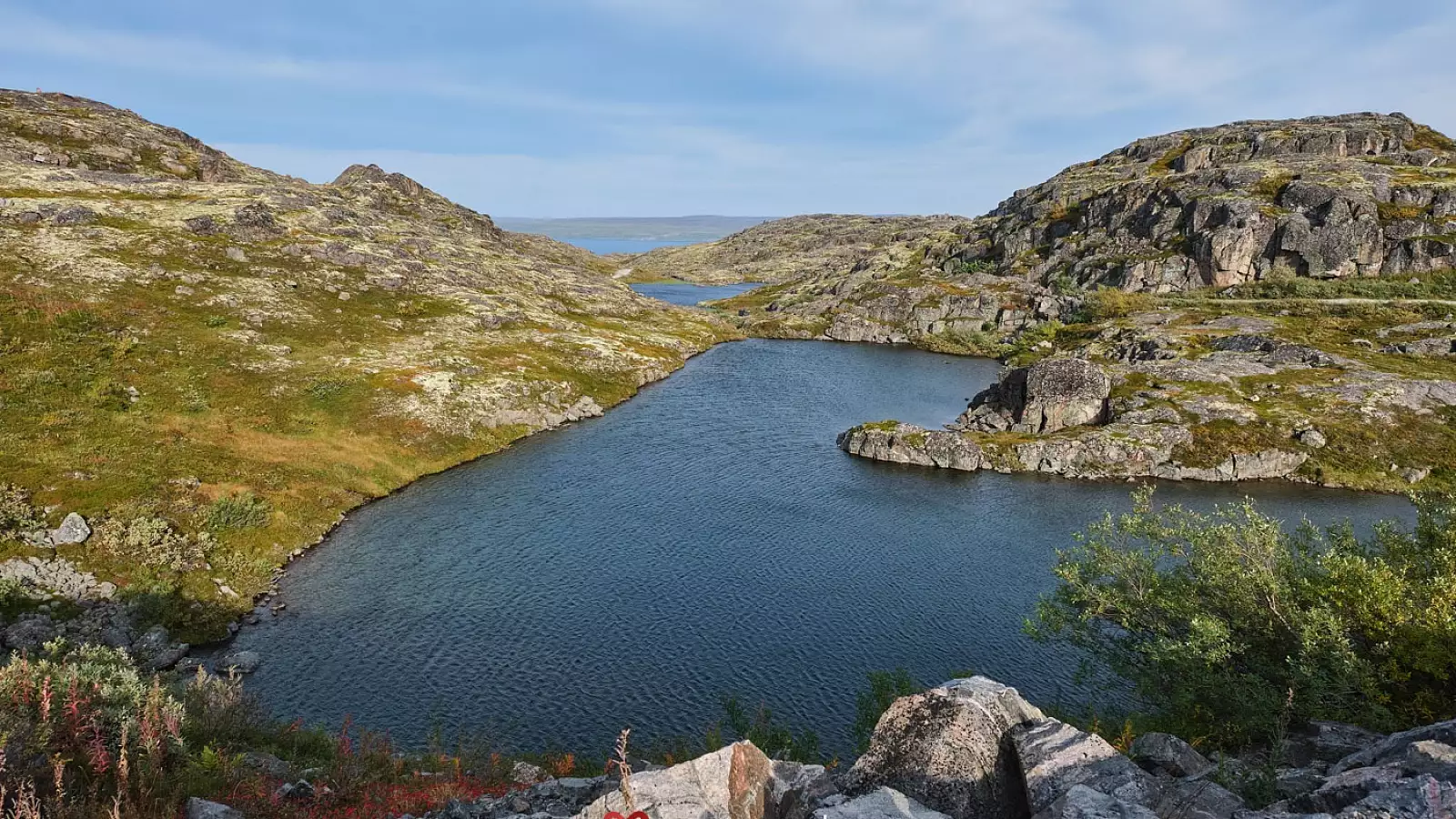 Большую часть полуострова Рыбачий занимает тундровое плато. Летом оно оживает: камни покрываются ковром из мха и лишайников, между ними пробиваются яркие арктические цветы. Здесь встречаются крошечные озёра, отражающие небо, и обширные каменные россыпи. На плато чувствуешь, что находишься на настоящей северной земле — дикой, ветреной и первозданной.