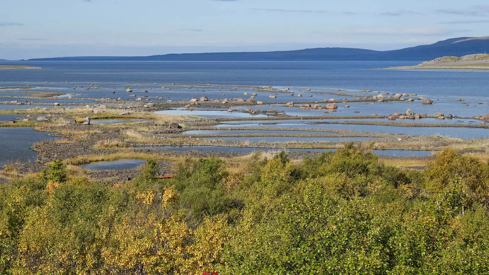 Дальше начинается грунтовая дорога, которая ведёт на перевал Муста-Тунтури — ворота на Полуостров Средний. На вершине перевала — абсолютная тишина. Здесь по-настоящему понимаешь, что такое север: ни деревьев, ни зданий, только ветер, камни и небо. Отсюда открываются панорамные виды на плато и дальние линии скал, а в ясную погоду можно разглядеть и полоску моря на горизонте. Туристы часто задерживаются здесь — перевал словно предлагает остановиться, перевести дух и оглядеться, прежде чем войти в настоящее арктическое безмолвие. Сразу за перевалом Муста-Тунтури начинается узкая перемычка — именно она соединяет материк с полуостровами Средний и Рыбачий.