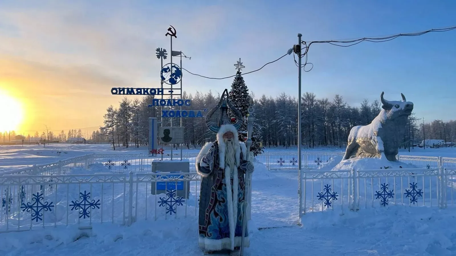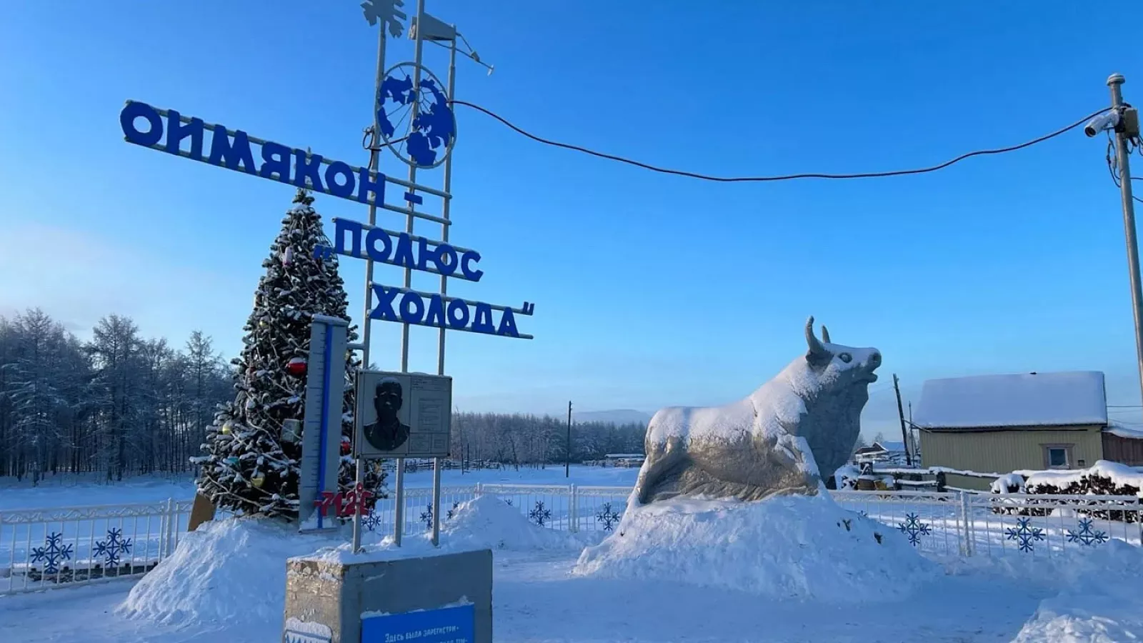 На въезде в посёлок установлен памятный знак — стела «Оймякон. Полюс холода», ставшая обязательной точкой для всех путешественников. Здесь фотографируются в тундровых костюмах, разворачивают флаги, измеряют температуру — и символически «принимают» холод как часть опыта. Вокруг — горы, снег и безмолвие. Даже летом здесь ощущается прохлада, а зимой мороз может легко опуститься ниже –50 °C. Несмотря на споры о точности измерений, суровая зима здесь — неоспоримый факт. Температура в -50 °C считается нормой, а морозы -60 °C и ниже держатся неделями. Это действительно край, где холод становится частью культуры и быта.