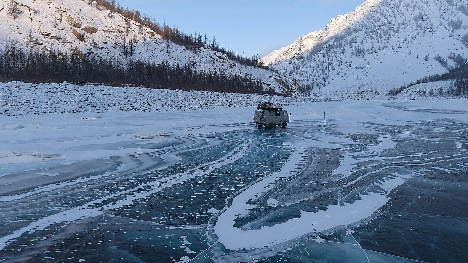 Одним из самых ярких эпизодов маршрута стала дорога по льду реки Индигирка. Зимой великая северная река превращается в протяженную ледовую артерию, по которой можно двигаться через территории, летом труднодоступные или вовсе изолированные. Этот участок выглядит почти нереально: ровная белая поверхность, морозный воздух, тишина, редкие следы жизни и бесконечное ощущение пространства. Именно здесь особенно ясно понимаешь, что северная зима — это не только испытание, но и красота почти космического масштаба.