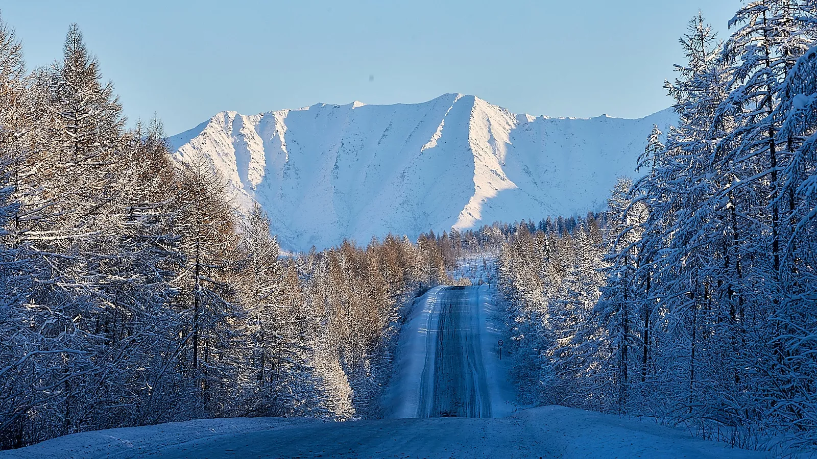 Уже на первых этапах дорога задает высокий ритм. Часть маршрута проходит по Колымской трассе, включая участки перевалов Верхоянского хребта. Зимой эта дорога выглядит особенно впечатляюще: снежные подъемы, горные участки, бесконечные белые пространства и ощущение настоящей экспедиции, где за каждым поворотом открывается новый северный пейзаж. Здесь особенно остро чувствуешь масштаб Якутии и понимаешь, что дорога в этих местах — это не просто путь из точки А в точку Б, а самостоятельное событие.