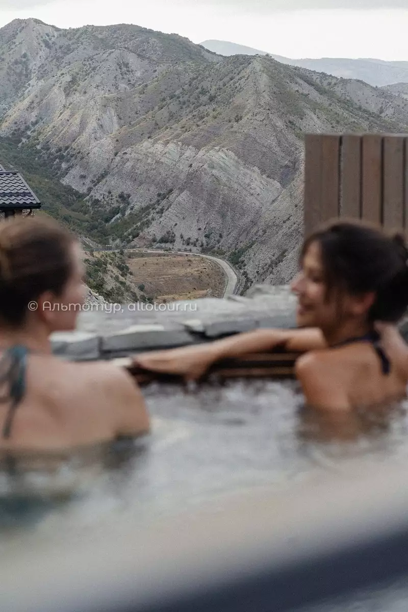 Мы погрузим вас в историю, культуру и уклад жизни края. В туре вы отдохнете в потрясающей бане с открытым бассейном и чаном в горах. Также в стоимость тура входят входные билеты на все достопримечательности