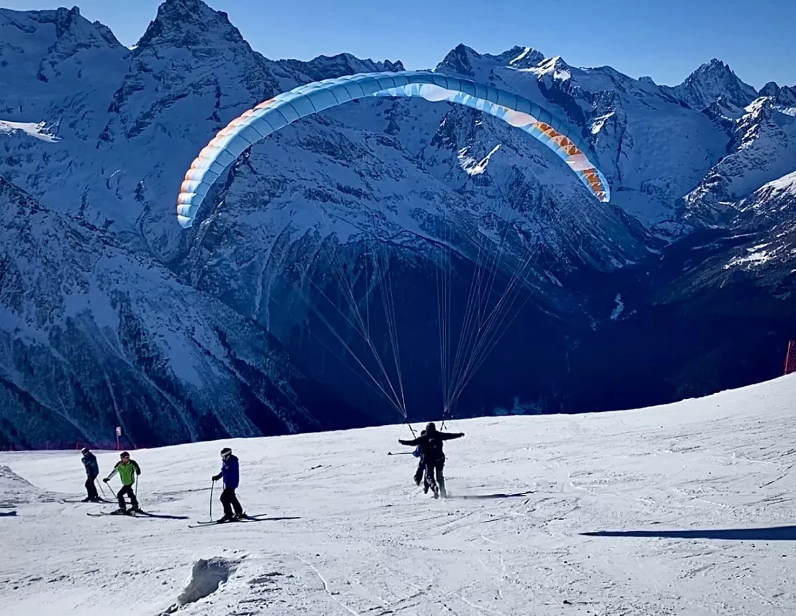 А для самых смелых полёт на параплане с одной из станций канатной дороги. Представьте: вы парите над склонами и укутанными снегом вековыми пихтами, вокруг только белые просторы и острые пики гор. Морозный воздух бодрит, ветер легко треплет куртку, а под вами сверкающий Домбай, словно из зимней сказки. Невероятные эмоции и кадры, которые останутся с вами надолго!