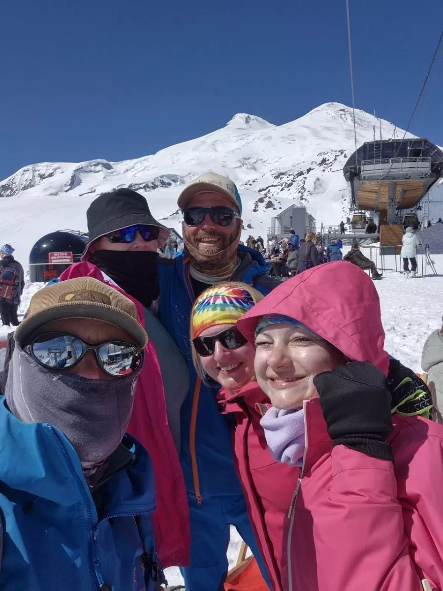 На пятый день мы едем кататься на гору Чегет. Трассы здесь немного сложнее, зато виды открываются уникальные: Баксанское ущелье, вулкан Эльбрус и гора Донгузорун с ледником Семерка. Обедаем в кафе с панорамным видом на вершины. Вечером по желанию баня, чтобы снять усталость, и ещё истории за ароматным чаем из трав Приэльбрусья.