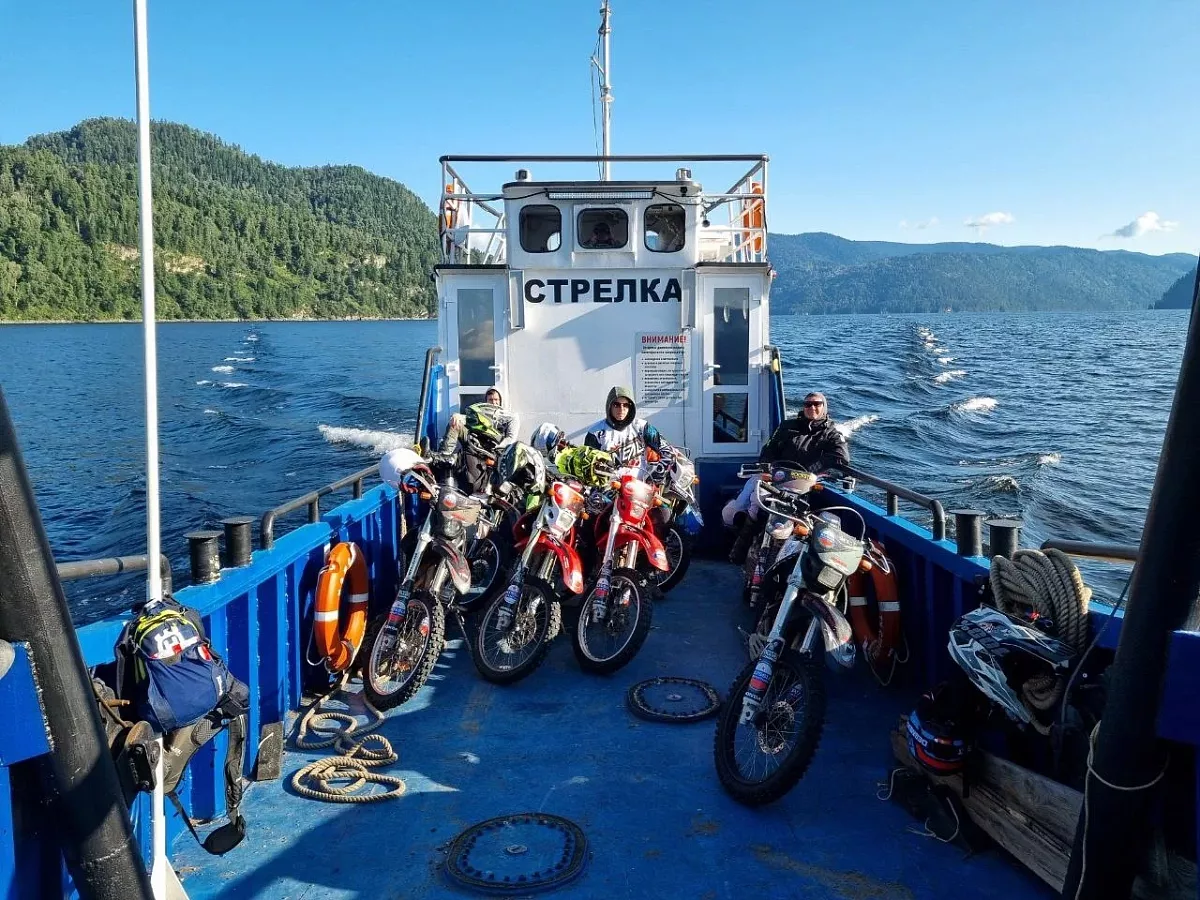 Сегодня у нас ранний подъём, в 5 утра погрузка мотоциклов на борт корабля, который доставит нас и наши мотоциклы на противоположный берег Телецкого озера. Протяжённость озера 80 км, ширина около 3-х км, по сути это ущелье, заполненное водой. Мистика ощущается на озере с первых миль. Говорят, оно не пускает людей с плохими намерениями. А людям с чистой душой и миром в сердце дарит удивительную красоту альпийских лугов, звенящих водопадов и строгих утёсов, хранящих в своих пещерах тайны многих веков.