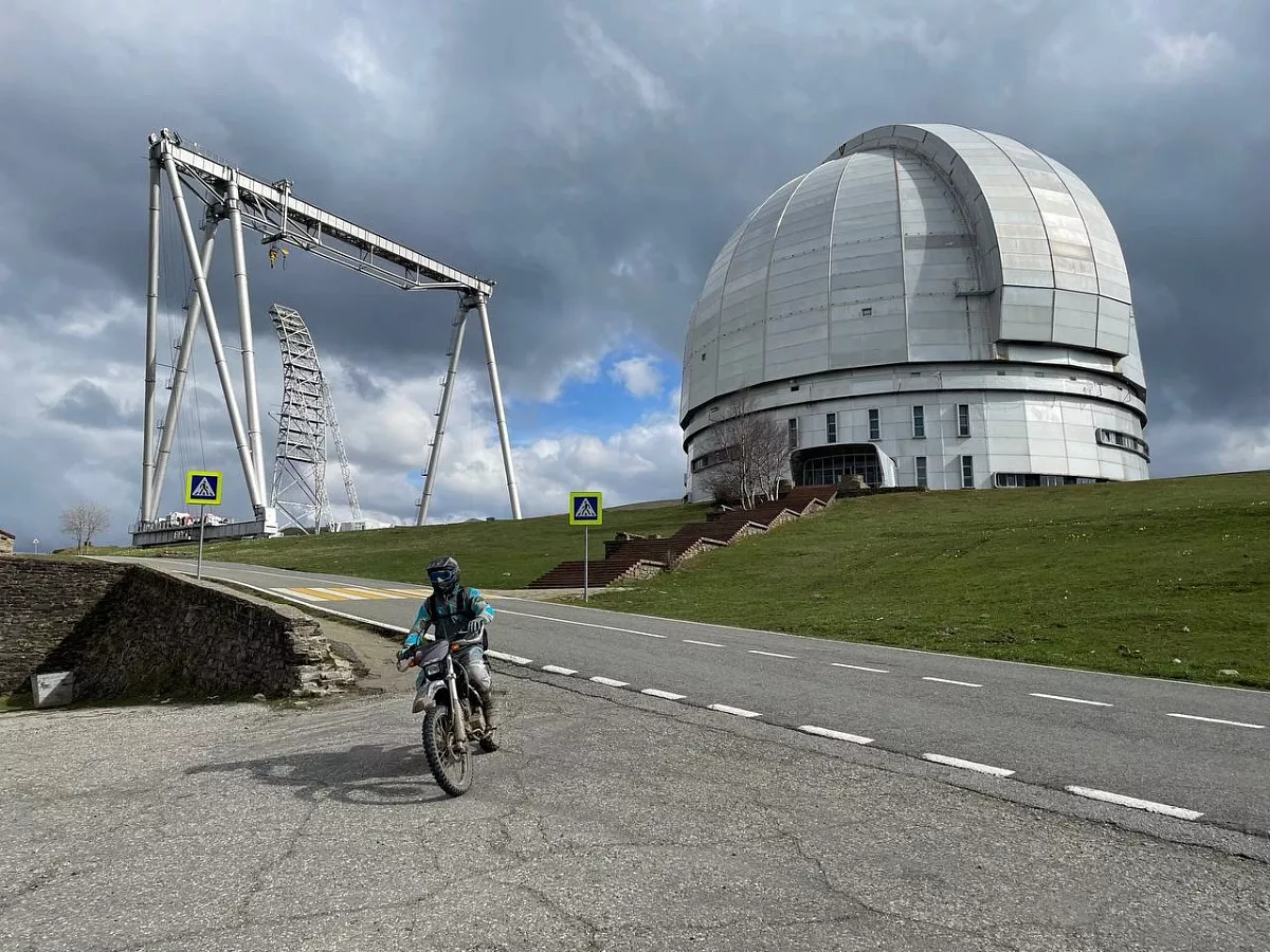 Начнём день с подъём по самому пологому серпантину в России, который был специально построен для доставки на верх огромного зеркала телескопа диаметром 6 метров и массой 42 тонны на высоту 2070 м. После осмотра бта нас ждёт спуск в долину реки Марухи. Преодолев несколько лесистых перевалов, поднимемся на вершину хребта, с которого в хорошую погоду открывается бомбический вид на Эльбрус. Затем нас ждёт гравийный спуск к Византийскому храму 5 века. После асфальтового прохвата приземляемся в комфортный отель в Теберде.
