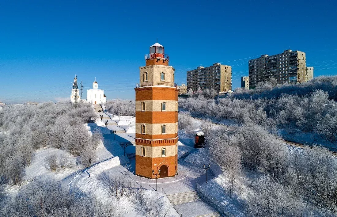Далее погуляем по центру Мурманска. Сходим в сувенирный магазин за рыбой, которую можно привезти в подарок. Сделаем паспорт полярника (не включено в стоимость). Прогуляемся до смотровой на Кольский залив, увидим памятник Алеша, маяк и рубку затонувшей атомной подлодки Курск.