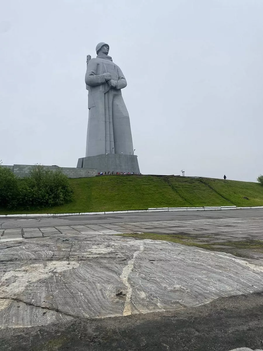 Самый высокий памятник за Полярным кругом, Мемориал Защитникам Советского Заполярья в годы Великой Отечественной войны. Взгляд воина устремлен на запад, в сторону Долины Славы, где во время Великой Отечественной войны проходили наиболее ожесточенные бои на подступах к Мурманску.