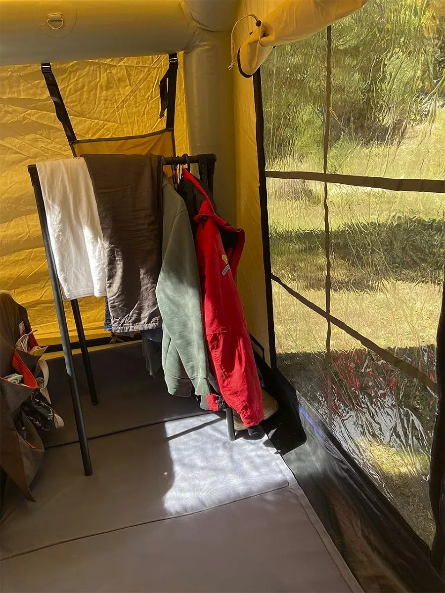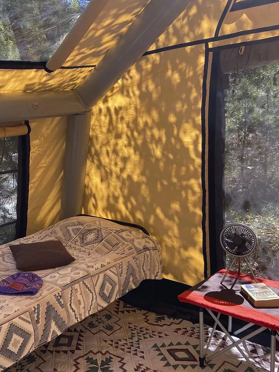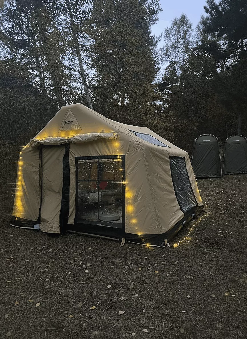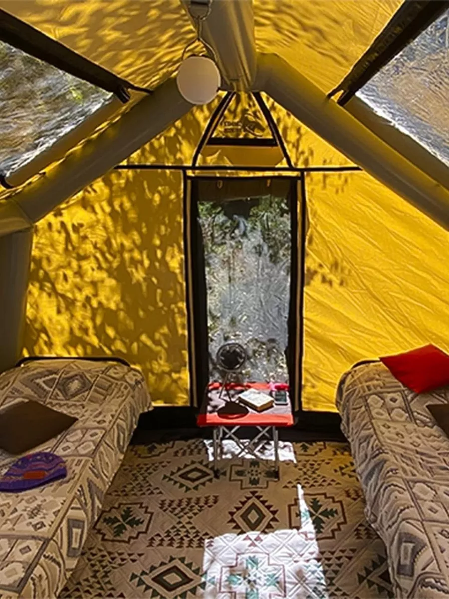 1. Жилой модуль «Хижина-Х»: современная, ветроустойчивая надувная конструкция с панорамными окнами, создающая эффект полного присутствия на природе.