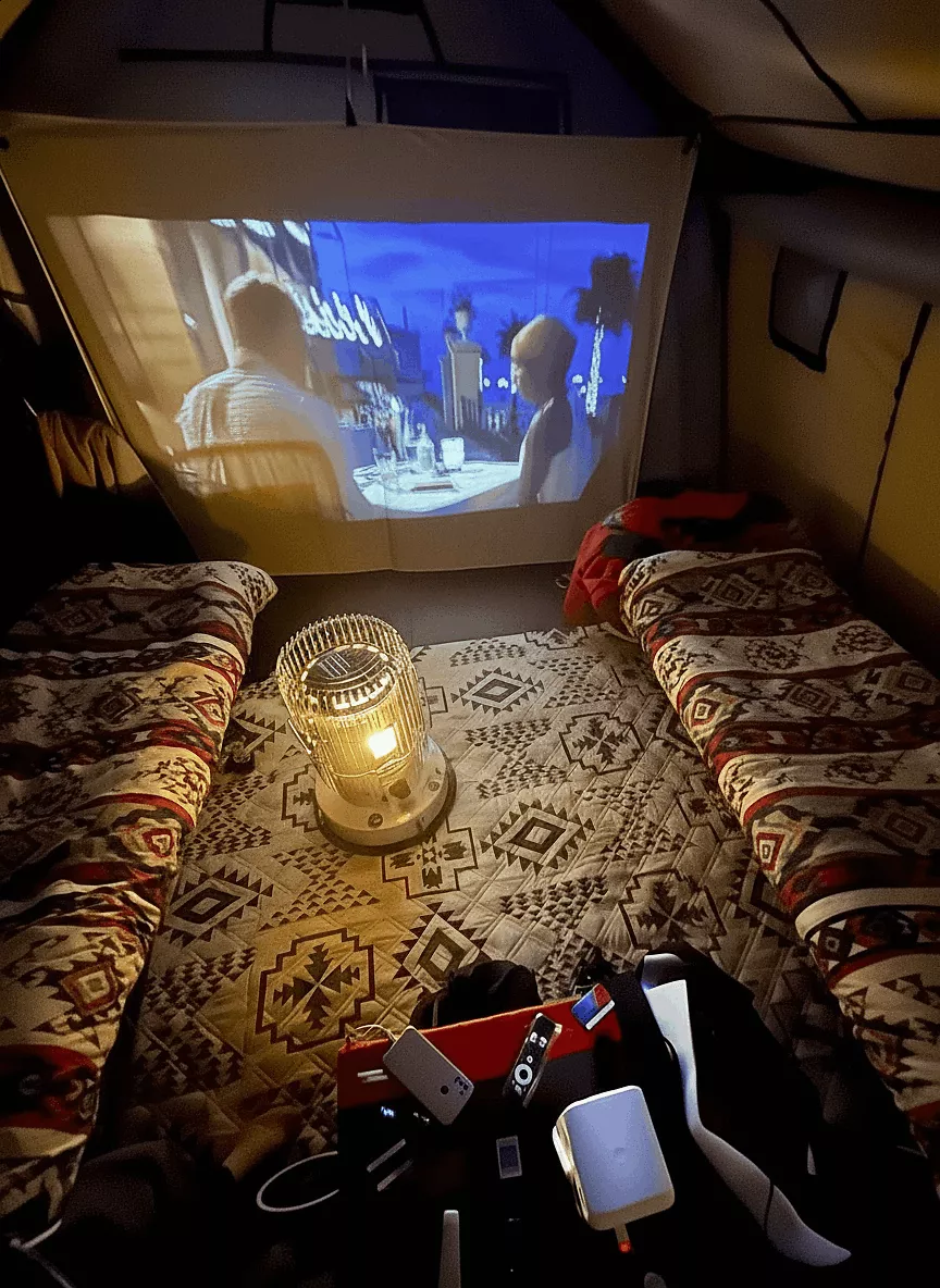 Досуг и технологии: видеопроектор с экраном для организации вечерних кинопросмотров; смарт-телескоп для наблюдения за звездами и планетами с подключением к вашему смартфону.