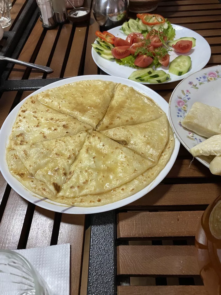 Шестой день. Возвращение в Россию. Владикавказ, где нас ждал уютный отель "Планета Люкс" и ресторан "Man&Gaal" с вкуснейшими осетинскими пирогами. Утром — сытный завтрак.