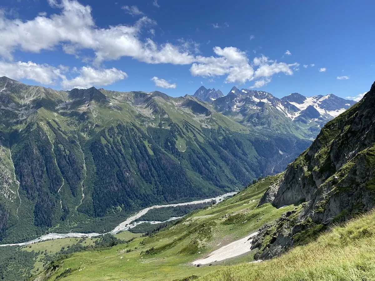 После завтрака мы отправимся к Церковной поляне, откуда начнется наш подъем по живописному лесному массиву. Хотя путь кажется сложным и крутым, наградой станет захватывающая панорама, которая откроется с отрога хребта Абишира-Ахуба. Перед вами предстанут окрестности Архыза: горы Пшиш и София, Лунная поляна, поляна Таулу и Главный Кавказский Хребет. В ясную погоду можно даже разглядеть Эльбрус.