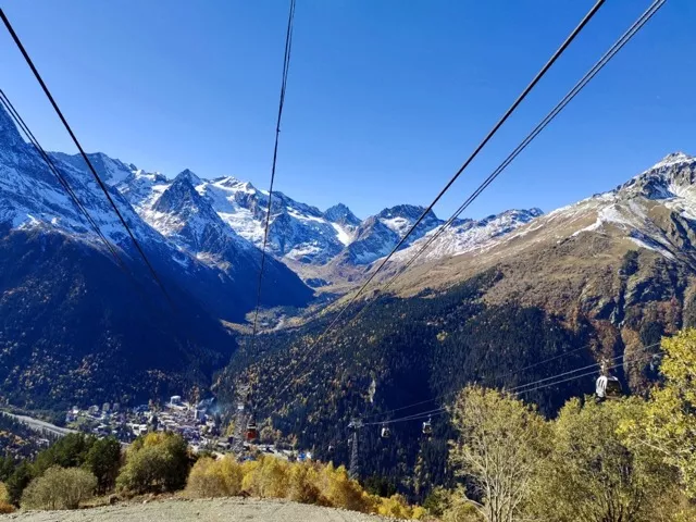 Начинаем утро с подъёма на канатной дороге Мусса-Ачитара. Подъём проходит по очередям станций: каждая новая станция открывает разные ракурсы сначала лесной, затем альпийский, а после широкий ветровой простор. Чем выше, тем шире поле зрения взгляд охватывает ущелья Алибек и Домбай-Ульген, линии вершин Домбай-Ульген, Джугутурлучат, Птыш и Белалакая, по ту сторону виднеется Главный Кавказский хребет. При ясной погоде на горизонте появляется силуэт Эльбруса.