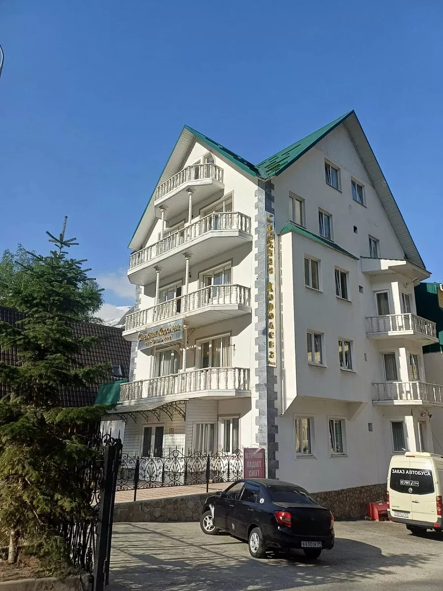Дальше нас ждёт уютная гостиница в Домбае, вечерняя прогулка по поселку и ужин с видом на вершины.