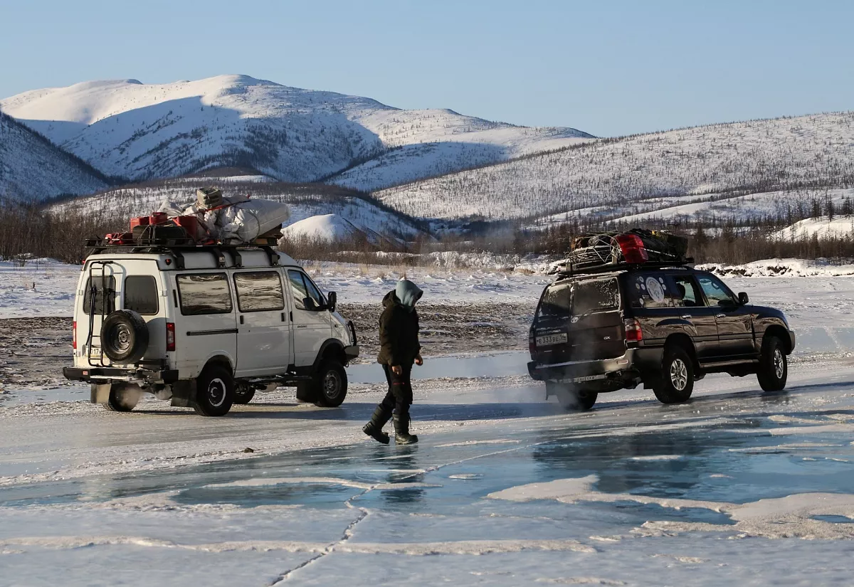 В пути путешественников ожидает еще одна ледовая переправа это зимник по реке Алдан.