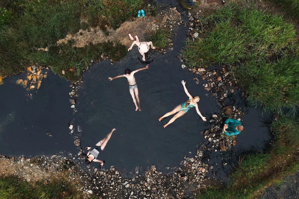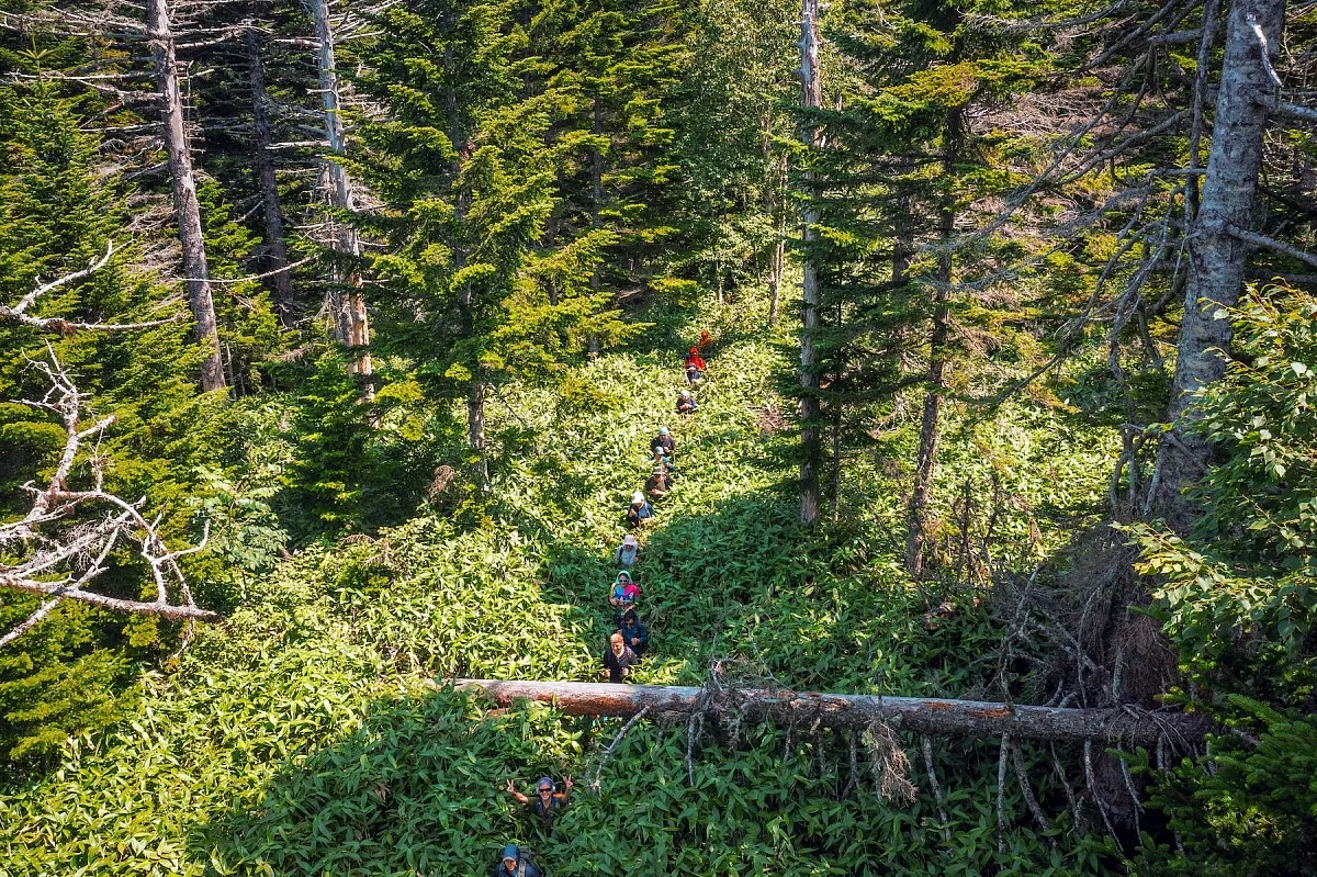 Очень яркое впечатление оставило разнообразие рельефа, которое мы преодолевали пешком или карабкались вверх и спускались, проходили вброд и через массив бамбучника. Следы медведей, ягоды кивии, полёт орла, устрицы под ногами, термальные природные ванны, никогда не забудутся.