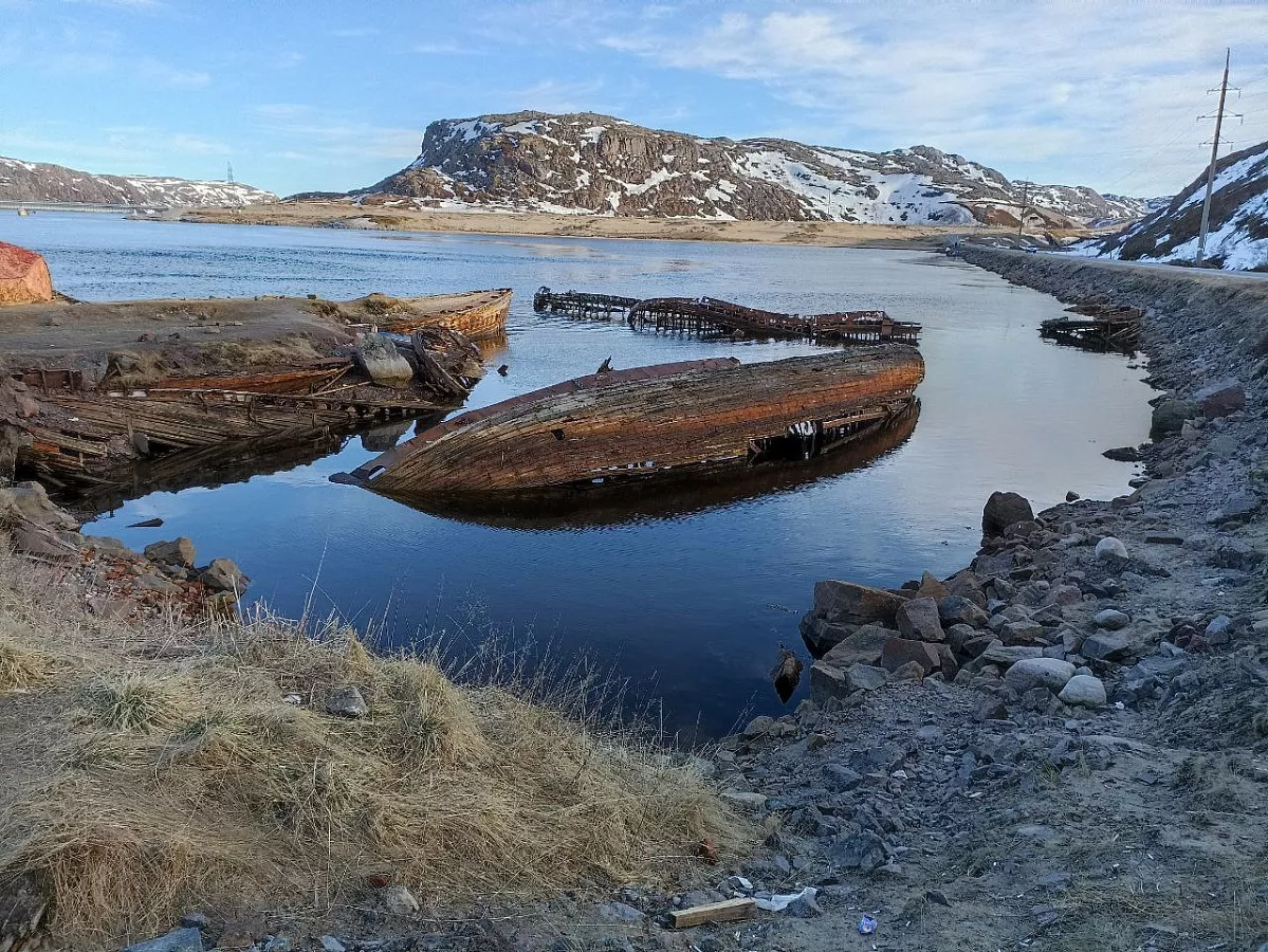 Мы осмотрим кладбище кораблей, нашедших свое последнее пристанище в Териберской бухте, и прогуляемся по песчаному пляжу, где во время отлива сможем залезть на выброшенное на берег рыболовецкое судно.