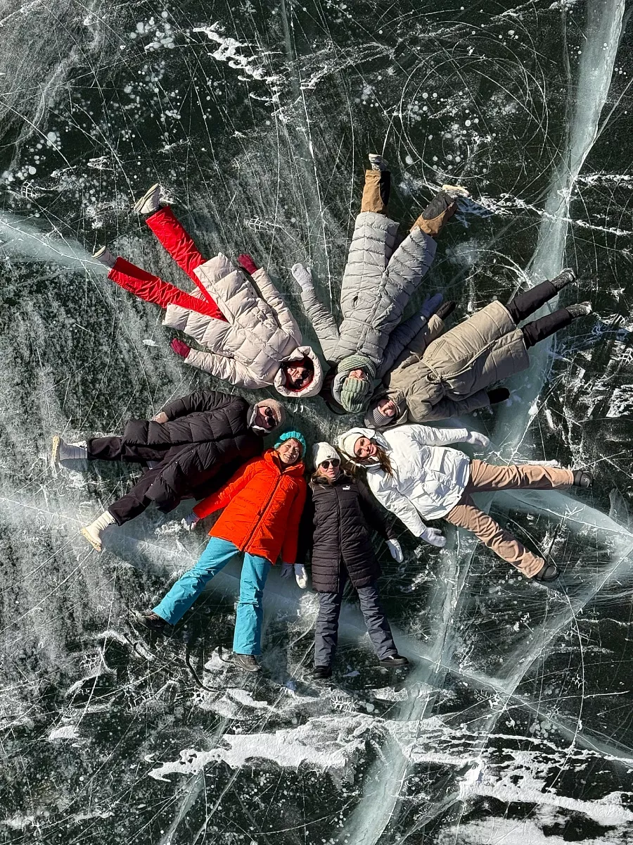 Гуляем по невероятно прозрачному байкальскому льду, вспоминаем детство и грызём сосульки, летаем надо льдом на хивусе, едим уху из омуля, приготовленную прямо на льду (льда будет много и он безумно красив), исследуем настоящую ледовую станцию, встречаем закаты и рассветы с видом на священную скалу, дегустируем ресторанные блюда посреди озера, катаемся на коньках и, конечно же, целуемся с Байкалом!