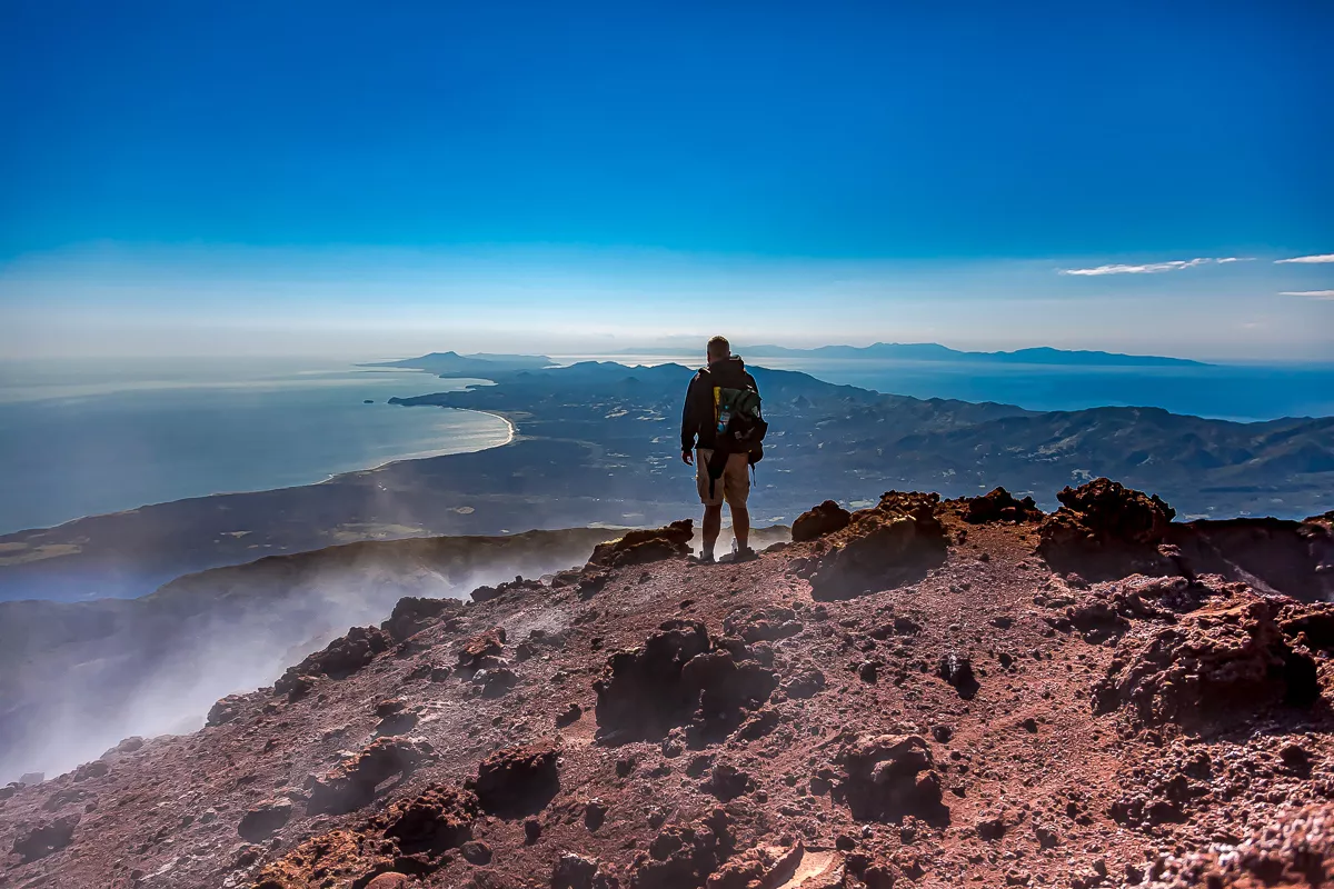 Достигнув кромки вершинного кратера, вы почувствуете колоссальную энергию планеты. Перед вами откроется гигантский кратер вулкана, внутри которого до сих пор сохранилась вулканическая активность. Виды, открывающиеся с вершины Тяти, невозможно передать словами это точка, где вы чувствуете себя на вершине мира. С вершины вулкана открываются великолепные виды на весь остров Кунашир, Итуруп, Хоккайдо и Шикотан.