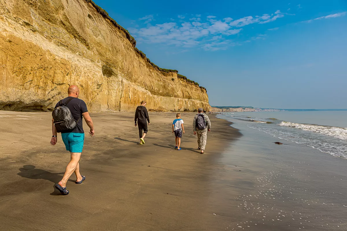 На мыс мы подъедем на машинах к берегу Охотского моря, далее предстоит треккинг по песчаному пляжу примерно 40 мин. В зависимости от уровня моря, чтобы посмотреть мыс полностью, возможно придется немного пройти по воде. Захватите шлепанцы и купальные принадлежности. Вода будет довольно теплой.