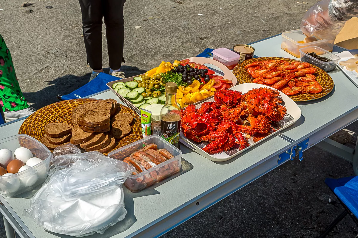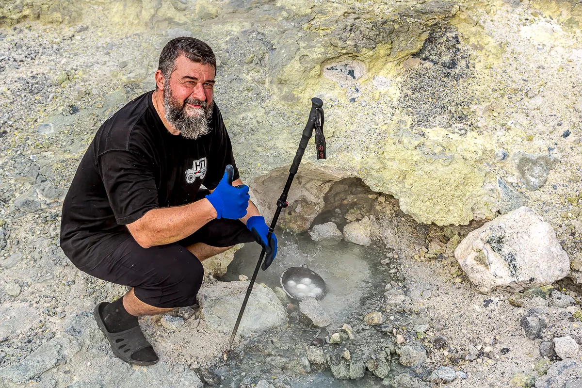 Также мы предложим вам необычную для Кунашира активность в одном из кипящих ручьев сварим яйца и продегустируем их с красной икрой. Потом у нас будет обед с местными морепродуктами