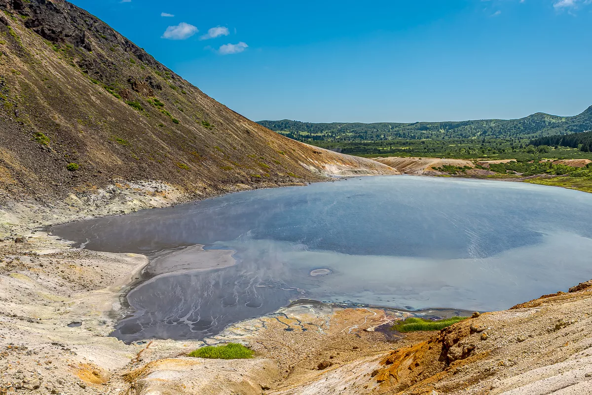 Вулкан Головнина это самый южный вулкан Курильских островов, один из четырех действующих вулканов на острове Кунашир. Кальдера представляет собой разрушенный в результате сильного взрыва кратер. При этом образовалась котловина диаметром около 10 км.