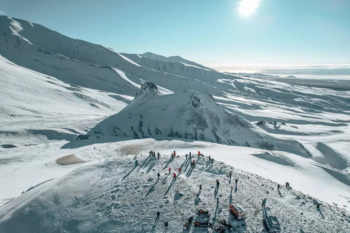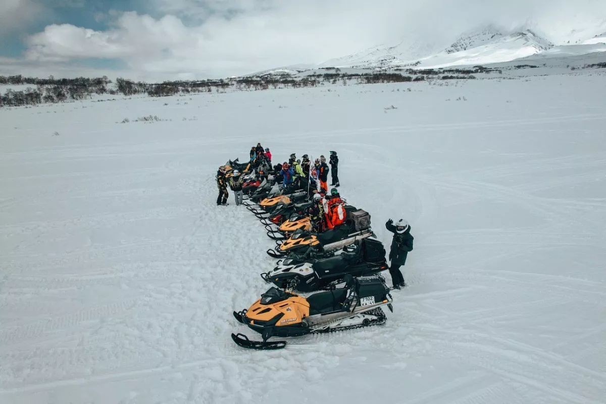 Сегодня нас ждёт поездка в вулканам на снегоходах. Трансфер с гостиницы до места пересадки в снегоходы (нарты), экипировка и инструктаж.