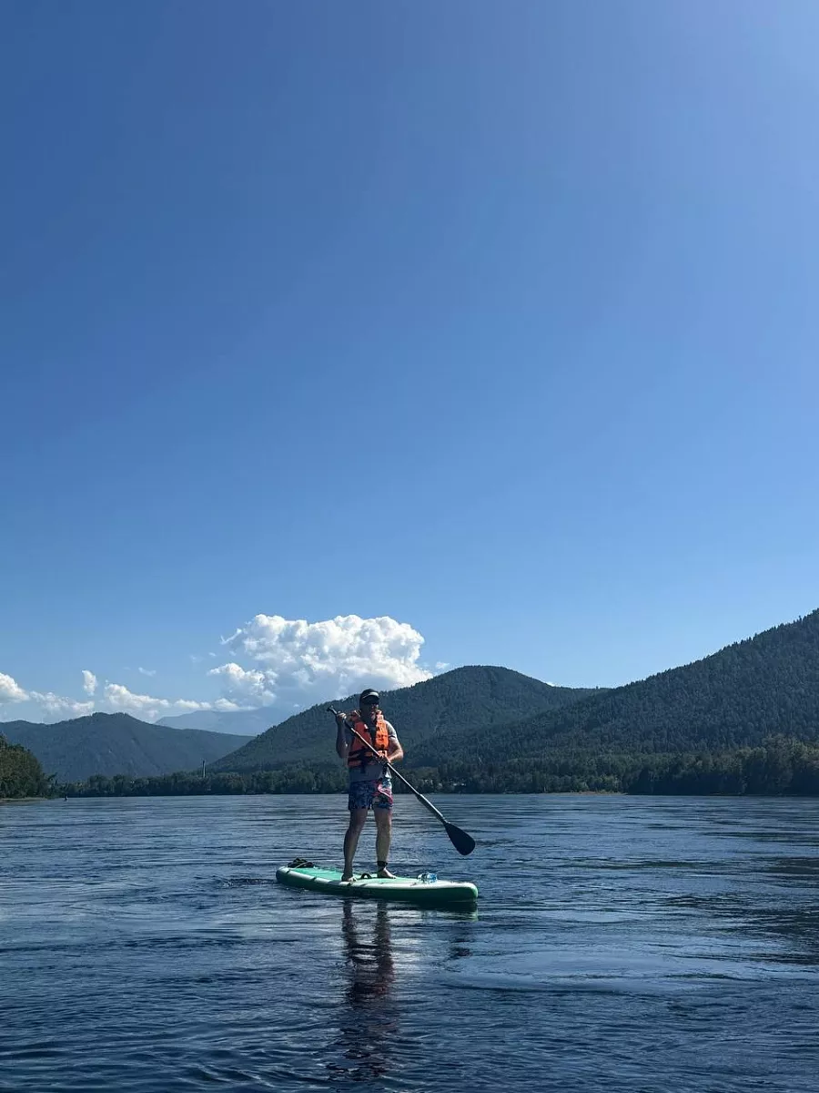 Прогулка на сапах по Енисею. Остановка и пикник на островах. Переезд в Абакан. Размещение в гостинице. Ужин. (Переезд за день 128 км.)