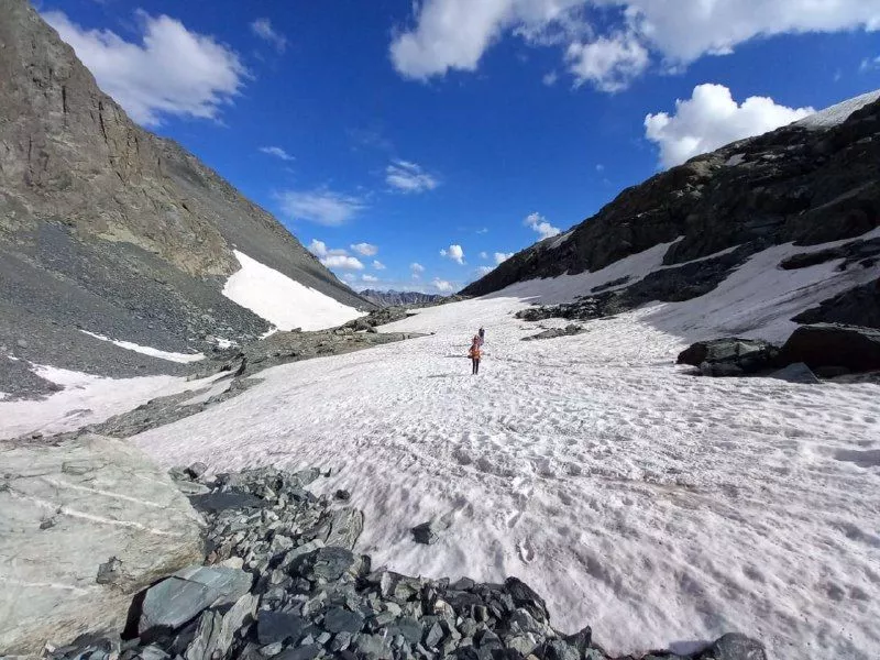 Ранний подъем и выезд. Сегодня вы отправляетесь в настоящее высокогорье. Там, где летом растут эдельвейсы, а в горы уходят альпинисты. В с. Курай вы пересаживаетесь на высокопроходимые машины и отправляетесь в ущелье Актру. Захватывающая дорога вас впечатлит. После заброски вы идете в пешую прогулку до ледника Большой Актру и Голубого озера. По пути вы преодолеете бараньи лбы и попадете в царство льда и камня. Здесь вы сможете ощутить себя, немного, снежными барсами. Вы пройдете по леднику, окруженному величественными вершинами. Возможен обед в кафе. Возвращаетесь в гостиницу с. Акташ.