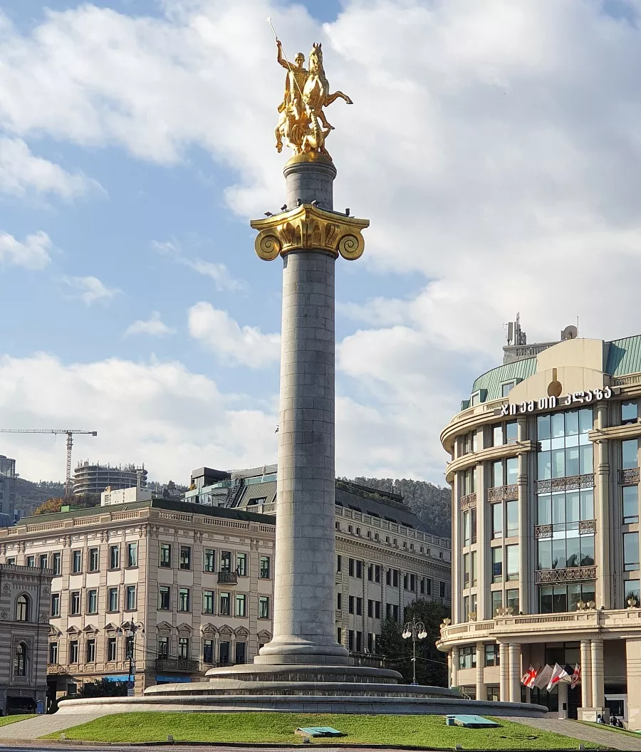 Мост Мира и площадь Европы. Хрупкая граница между древностью и современностью, где вечерний свет делает Тбилиси особенно красивым.