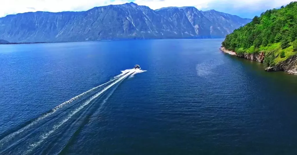 Полюбовавшись этими водопадами, мы поплывем дальше, чтобы увидеть самый известный водопад Телецкого озера Корбу. Напротив водопада Корбу находится самая глубокая часть Телецкого озера 325 м (15-ое место в мировом рейтинге озерных глубин). Озеро очень прозрачное (можно различать камешки на дне озера на глубине до 15 метров) и довольно глубокое.