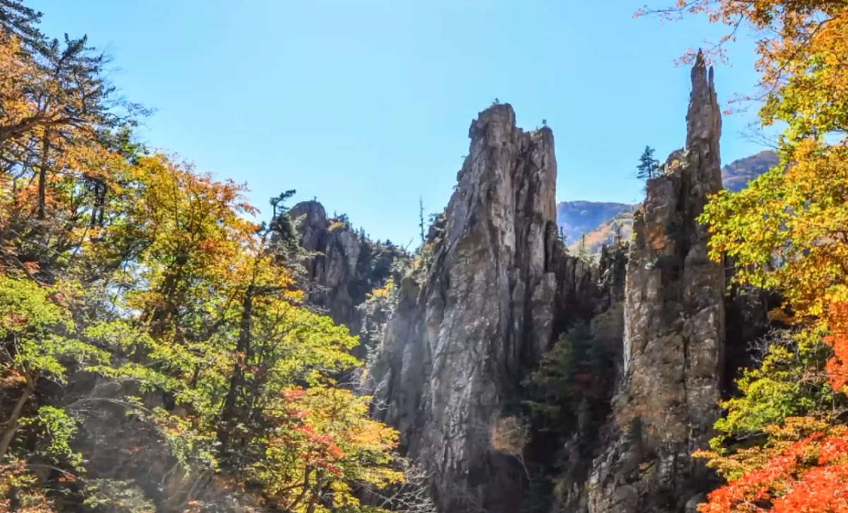 Скалы Чхонгун - это феномен, созданный вулканической активностью и эрозией рек.Их острые пики и отвесные кручи вдоль реки Амнок создают драматичный и захватывающий пейзаж, который словно переносит вас в древние легенды.