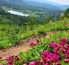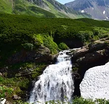 Отправление к горному массиву Вачкажец. По пути встречаем озера, реки и водопады удивительной красоты (5-6 часов в пути пешком). На протяжении всего маршрута открываются восхитительные пейзажи яркой и неповторимой природы, а обилие и разнообразие цветущих растений захватывает дух. Здесь вы найдете редкие растения, занесенные в Красную книгу. Вачкажец отличается от других вулканов, и больше напоминает швейцарские Альпы, нежели марсианские виды других камчатских вулканов.