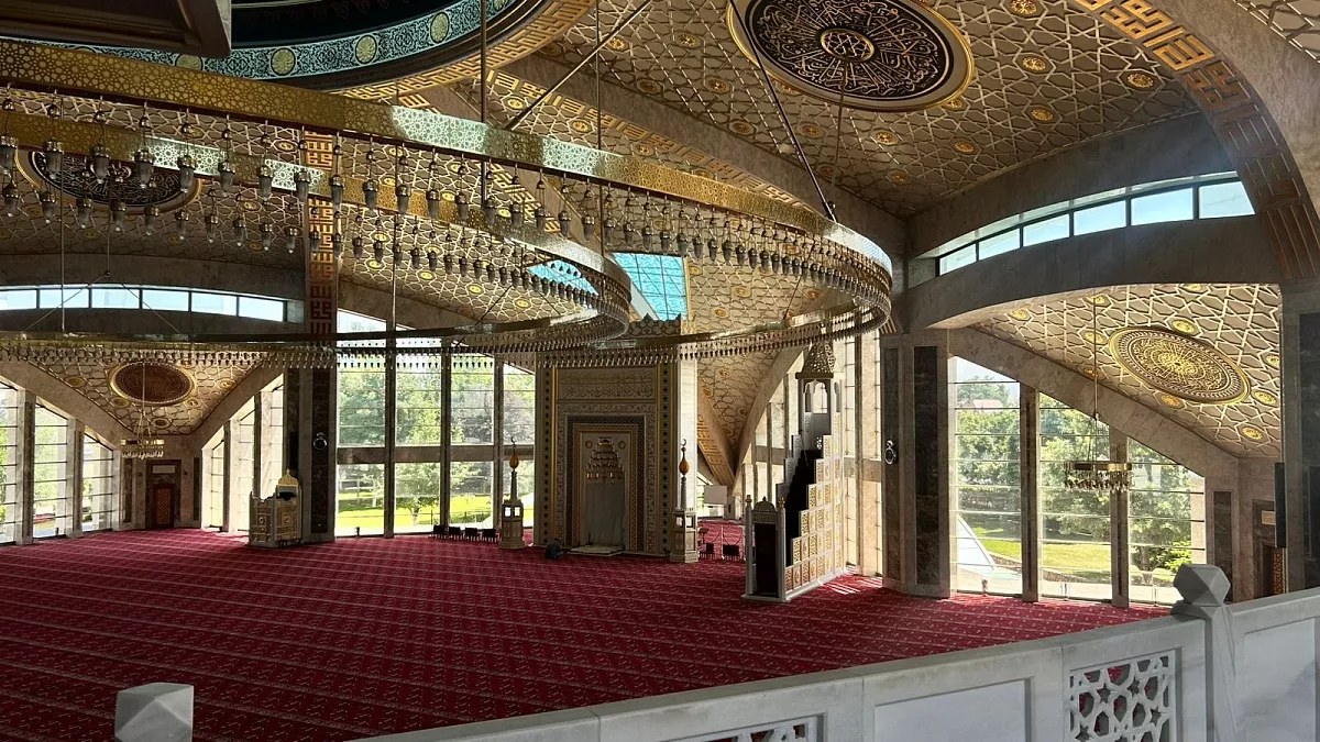 - После экскурсии, нас ждет переезд в г. Аргун, где мы познакомимся с первой ультрасовременной мечетью, выполненной в стиле хай-тек. Она названа именем матери главы республики Аймани Кадыровой и известна также как мечеть Сердце матери. Особенно красива мечеть вечером. Резной купол оснащен подсветкой, в темное время суток включаются 50 тысяч светодиодных ламп и 96 прожекторов (их цвет постоянно меняется: то розовый, то зеленый, то синий).